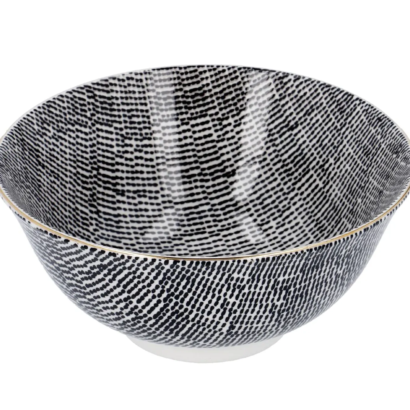 Mit dieser schwarz-weißen Schale aus feinstem Porzellan kannst du Suppen, Bowls oder Müsli stilvoll genießen. Auch deine Gäste werden begeistert sein, wenn du leckere Kleinigkeiten und Snacks in dieser Schale servierst. Durchmesser: 15 cm.Die Größe und das Gewicht beziehen sich auf eine Schale.