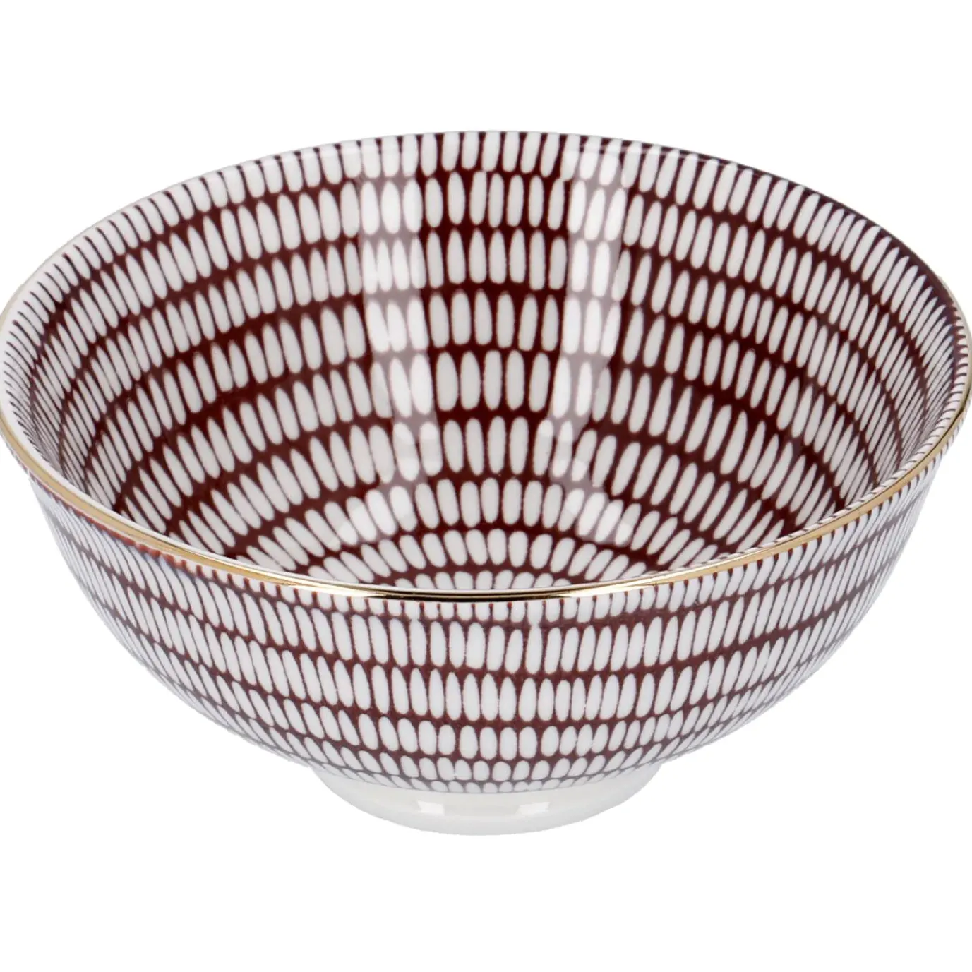 Schale China, Tief, Bordeaux/weiß, Goldrand, Stäbchen/Kreis
