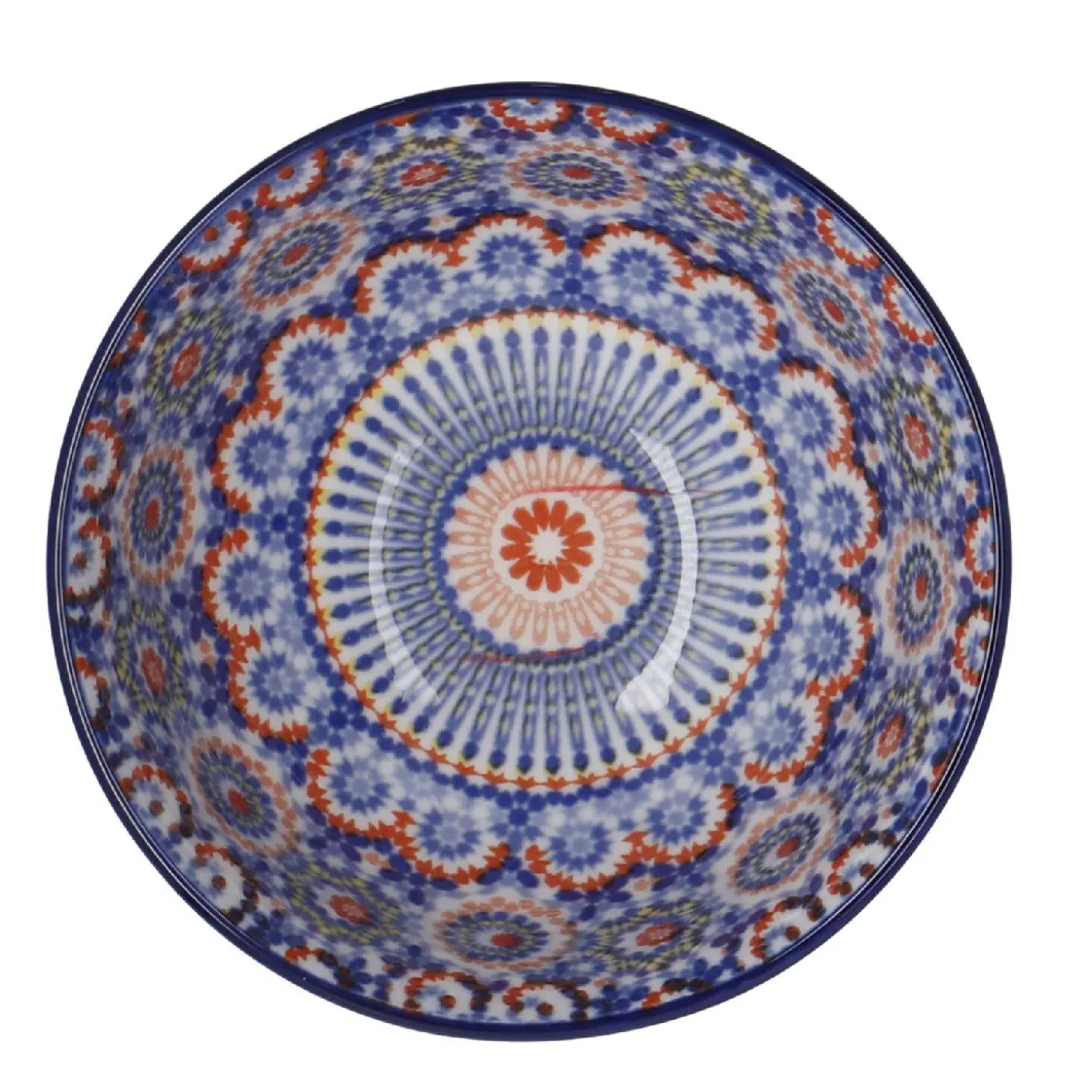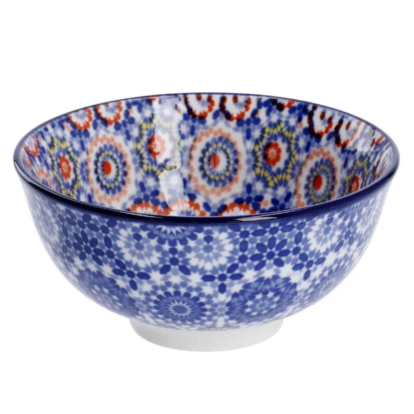 Serviere deinen Gästen Tapas, Snacks und andere kleine Leckereien in dieser hübschen Schale aus Porzellan mit blau-weißen Muster und orangen Akzenten.
