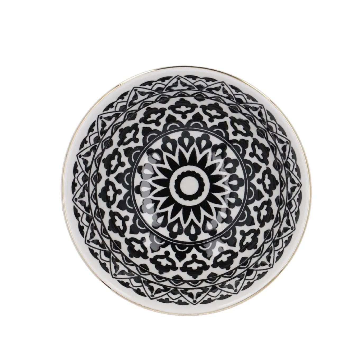 Schüssel China, Goldrand, Schwarz/weiß, Orient