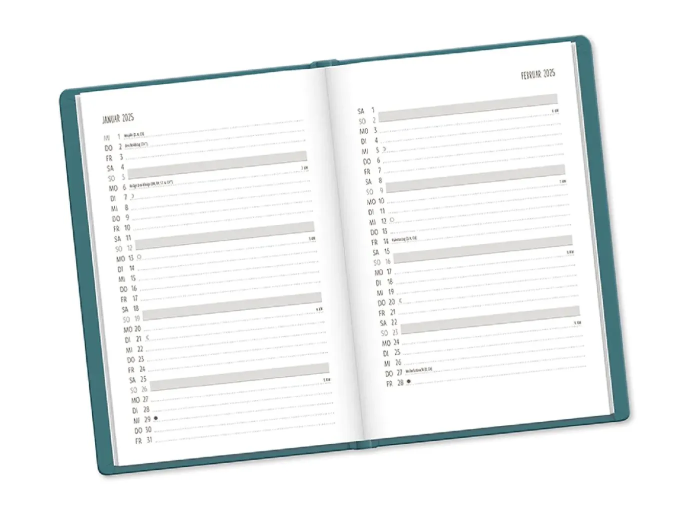 Terminplaner Lederlook, 2025, Petrol