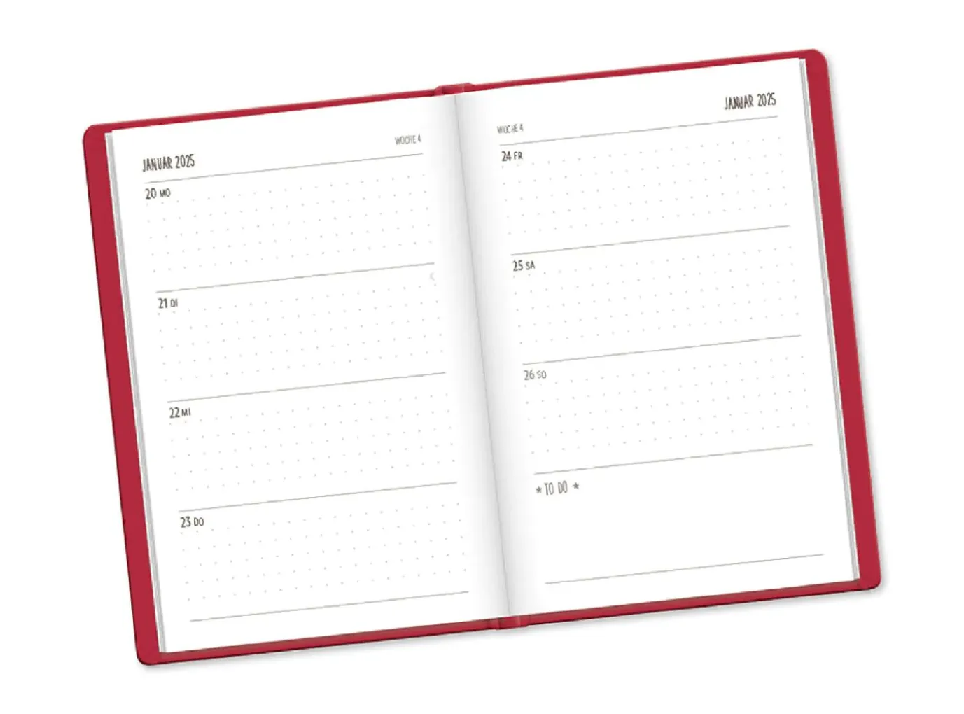 Terminplaner Lederlook, 2025, Rot