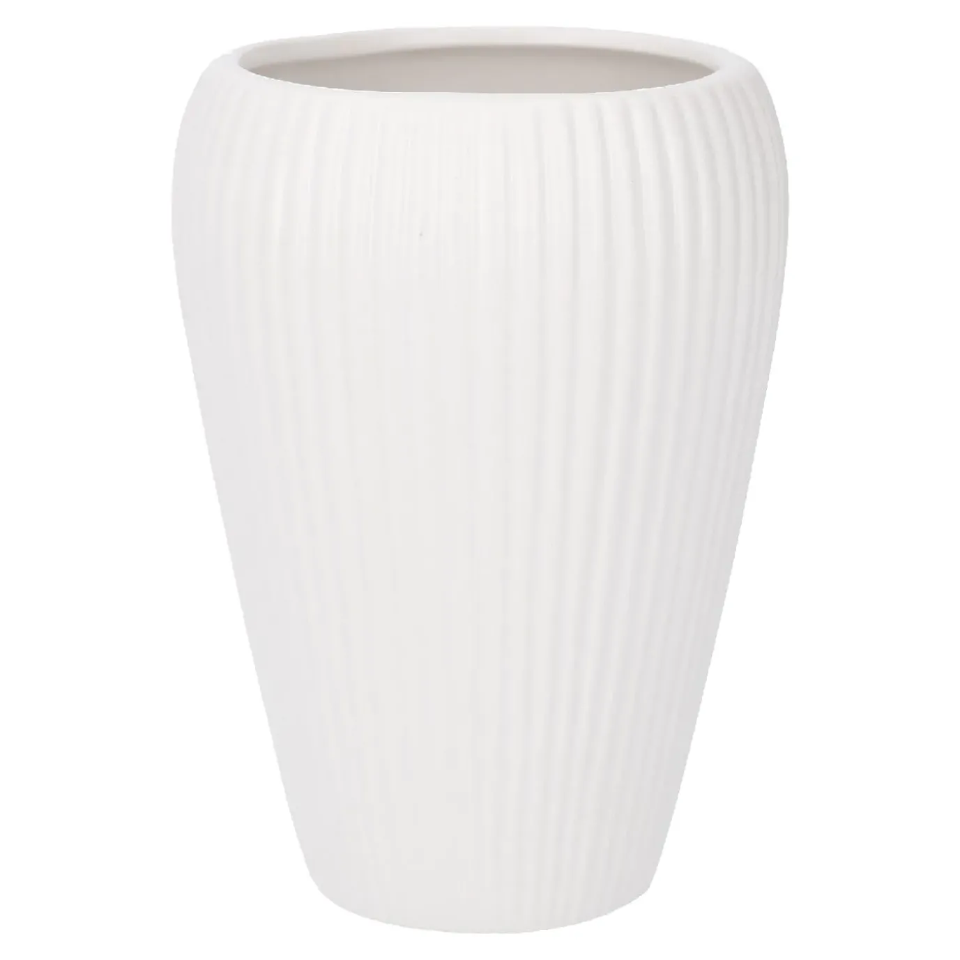 Diese moderne Blumenvase mit gerillter Oberfläche schenkt Blumen und Sträußen ein neues Zuhause.