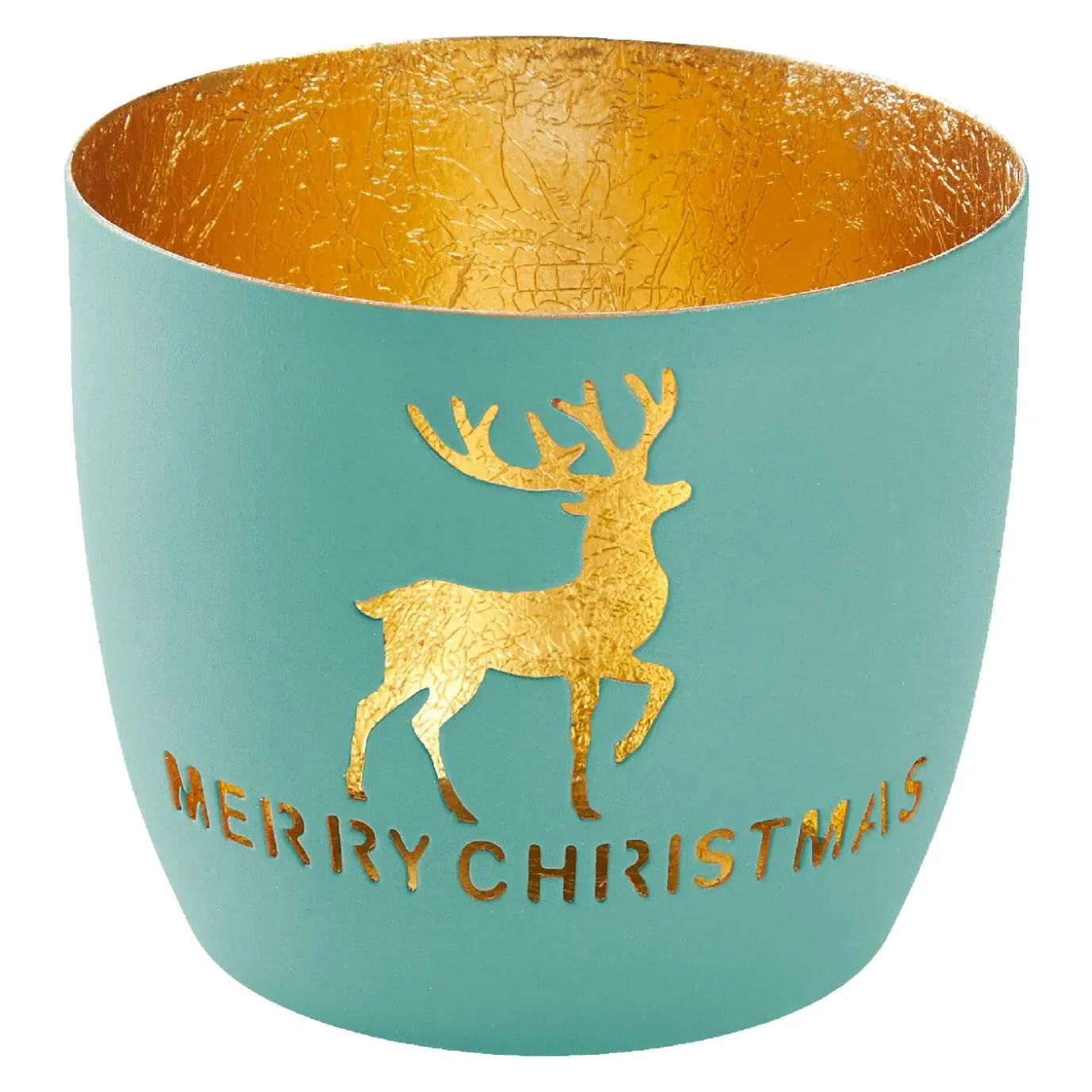 Windlicht Spruch/Xmas, Hirsch/türkis, 10 X 8.5 Cm